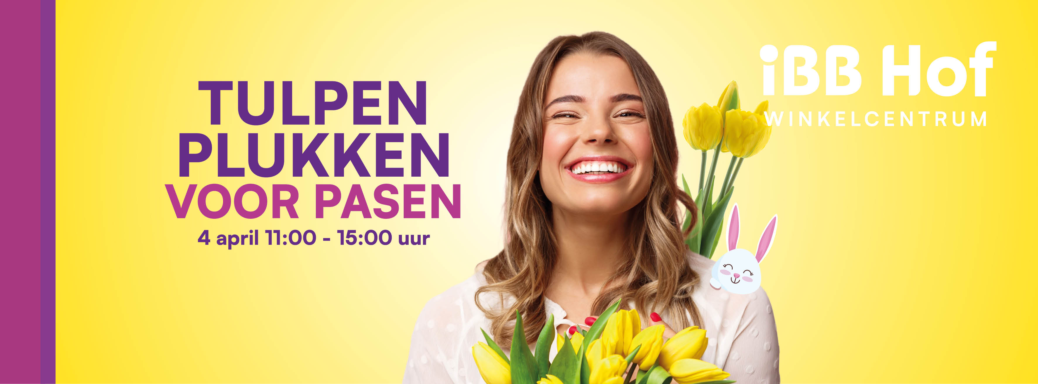 Dit jaar geen paashaas of eieren zoeken voor Pasen maar tulpen plukken! Op het plein is er op zaterdag 4 april tussen 11.00 - 15.00 uur een speciale tulpenpluktuin te vinden. Op vertoon van een kassabon met een minimale waarde van β¬ 5,- van een ondernemer uit ons boodschappencentrum, ontvang je een bosje tulpen cadeau*! Hierbij krijg je ook een tasje om ze veilig in mee te nemen. *π‘π°ππ’π―π¨ π₯π¦ π·π°π°π³π³π’π’π₯ π΄π΅π³π¦π¬π΅